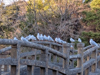ブログ2026.01.20 山茶花とゆりかもめ 健康づくりのためウォーキングは毎日 ある日の週末もいつもの様にウォーキングへ冬に咲く花は少ないのですが、公園では、山茶花が咲いていました。 ♪さざんか さざんか ・・・ 公園の池にかかる橋の上では ゆりかもめが日向ぼっこ K.F