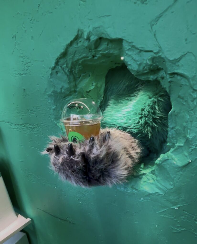 そして頼んだ商品も壁の穴からクマさんによる手渡しとなります。